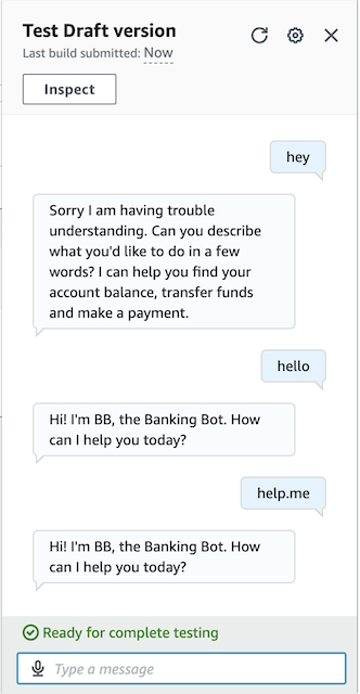 It can be seen that the bot is able to understand some of the phrase twist. But the input like "hey" is outside of the bot's confident score to understand. Next, we need to tell the bot what to respond if it doesn't understand user's intent.