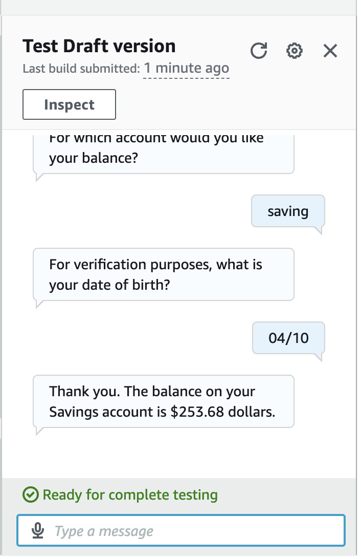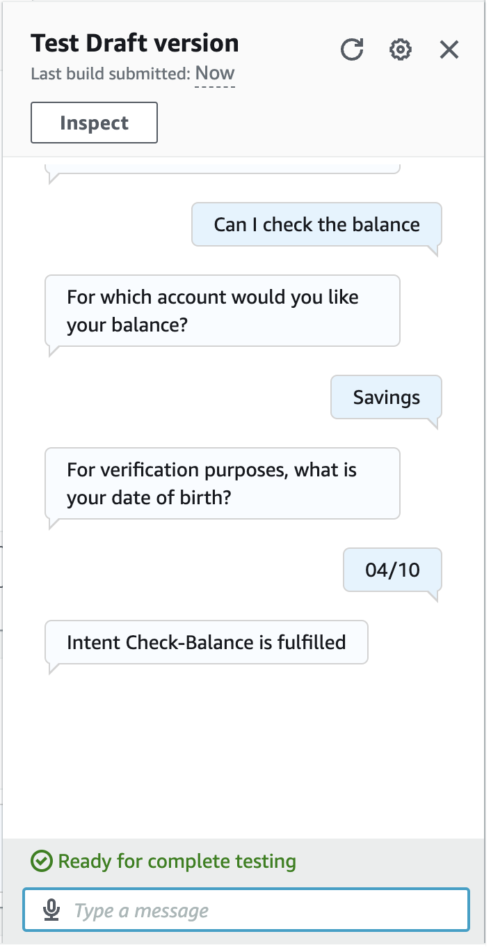 In Amazon Lex, fulfilment means completing the intent. After the bot received a user's account and the birthday for verification, the bot has all the information it needs and moves to fulfilment. This is where it will use the Lambda function to get the account balance and pass it back to the user.