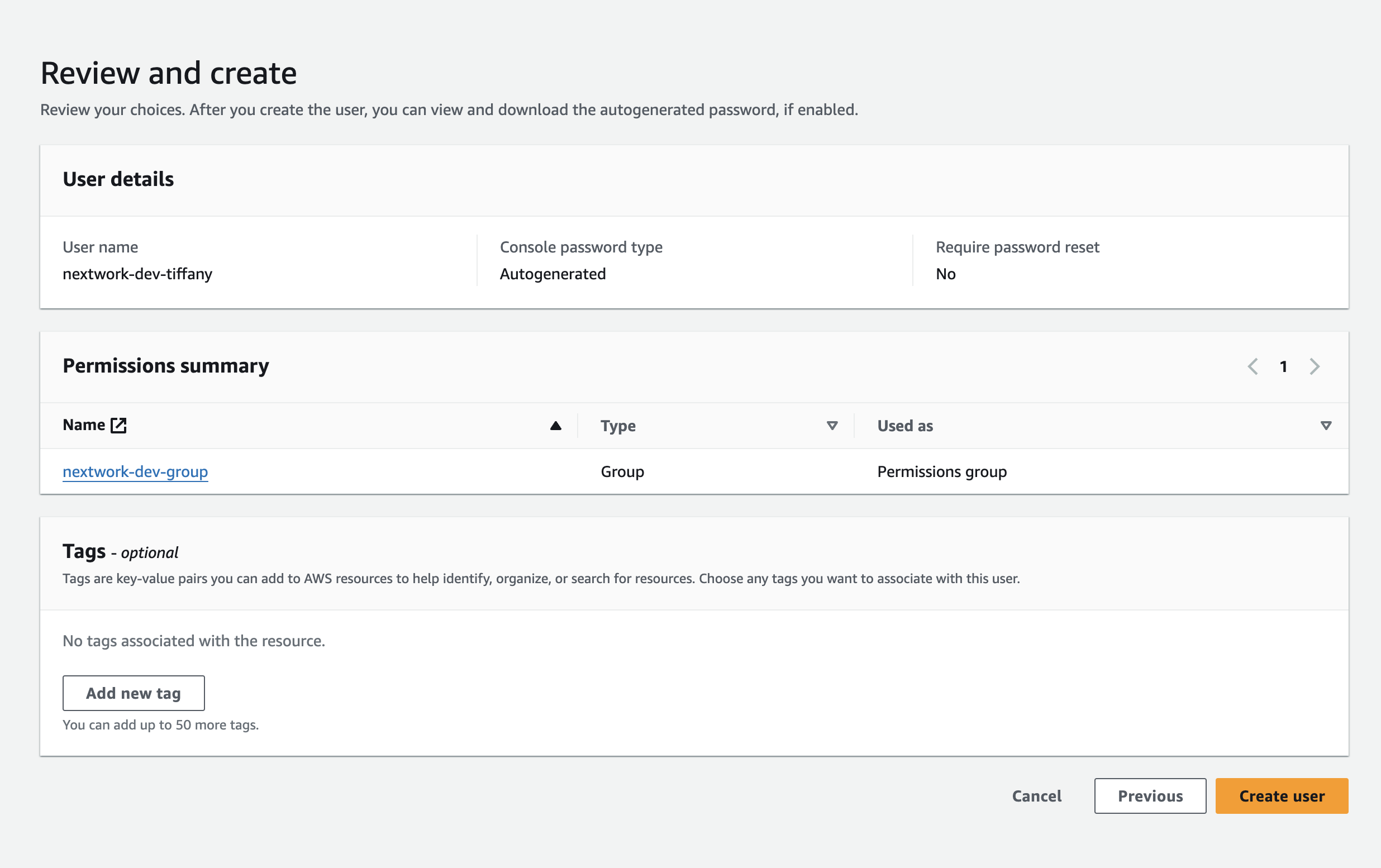 Here I created a new user group and then a new user to add to the group.
